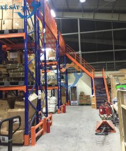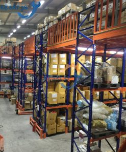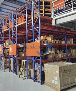 Một số hình ảnh về kệ kho kết hợp sàn thép để tải trọng nhẹ từ 200-500kg /tầng hoặc tải trọng pallet từ 1000-2000kg/tầng