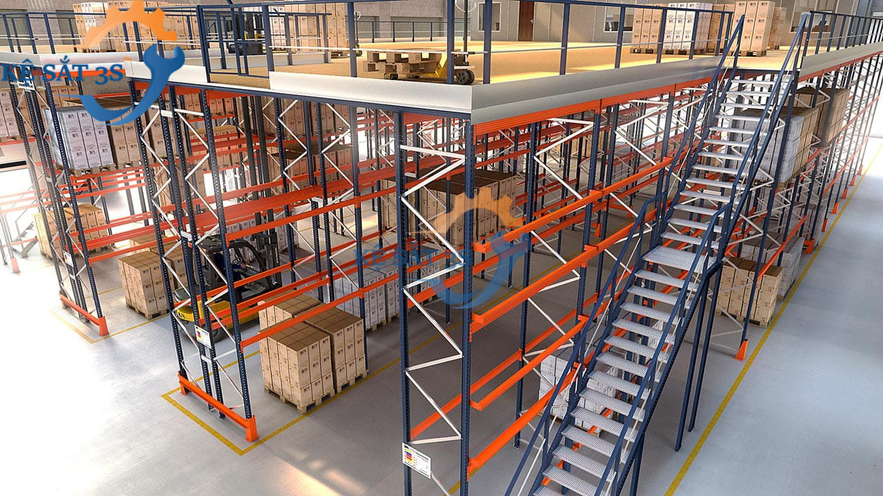 Nếu bạn đã có sẵn hệ thống giá kệ selective, shelving hoặc khung giá có sẵn, bạn có thể nâng cấp cho kho hàng của mình khi kết hợp thêm sàn gác lửng trên đỉnh cột hoặc tận dụng lối đi. Nếu hàng hóa của bạn rất nhiều SKU và cần phân loại chúng, hãy dùng phương án kệ kho kết hợp làm sàn thép( sàn gác lửng mezzanine) để tận dụng tối đa không gian bên dưới.