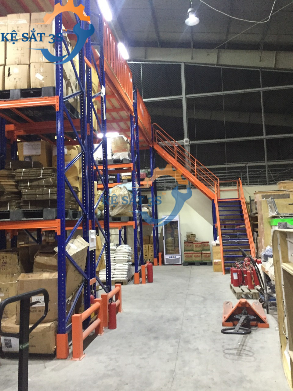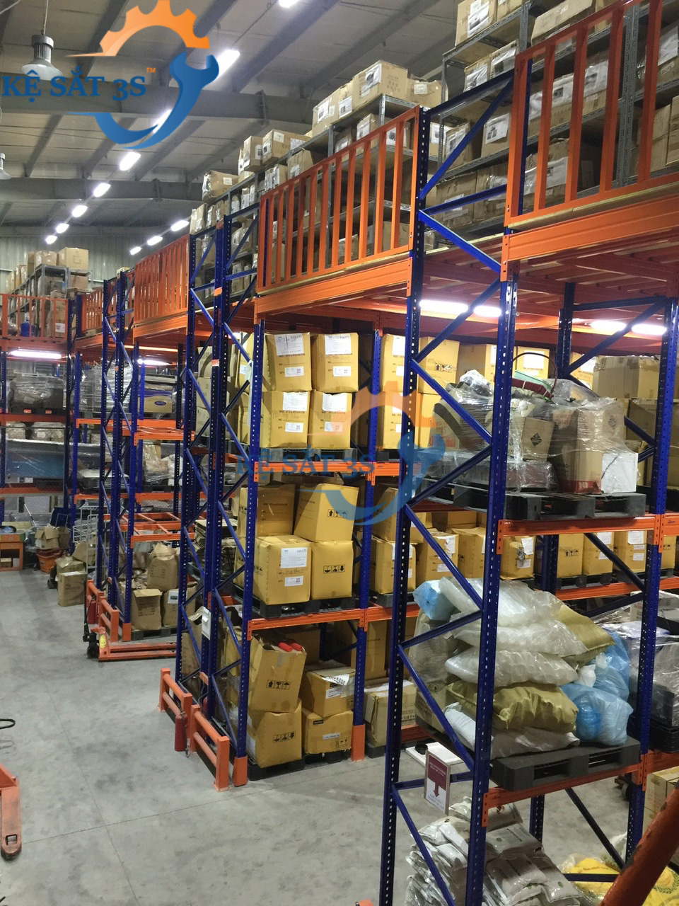 Một số hình ảnh về kệ kho kết hợp sàn thép để tải trọng nhẹ từ 200-500kg /tầng hoặc tải trọng pallet từ 1000-2000kg/tầng